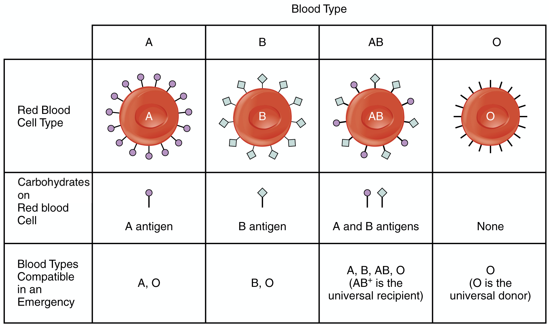 <figure><img src="https://3514673221-files.gitbook.io/~/files/v0/b/gitbook-x-prod.appspot.com/o/spaces%2FdDE3NSiCXcu5YQDQmgdU%2Fuploads%2FB8oYLOJururIqyIDWuM2%2FFig_78_blod_groups.png?alt=media&#x26;token=c1e6ece8-85b4-44cf-8678-553355efbe18" alt="" width="563"><figcaption><p>Blood groups<br>Image source:<br>OpenStax College - Anatomy &#x26; Physiology, Connexions Web site. http://cnx.org/content/col11496/1.6/, Jun 19, 2013., CC BY 3.0, https://commons.wikimedia.org/w/index.php?curid=30148183 with changes</p></figcaption></figure>